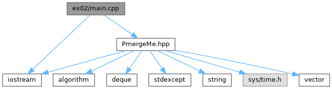 このプログラムは、コマンドライン引数として一連の正の整数を受け取り、 PmergeMeクラスを使ってマージ挿入ソートを実行します。 std::vectorとstd::dequeでの処理時間を比較し、結果を表示します。